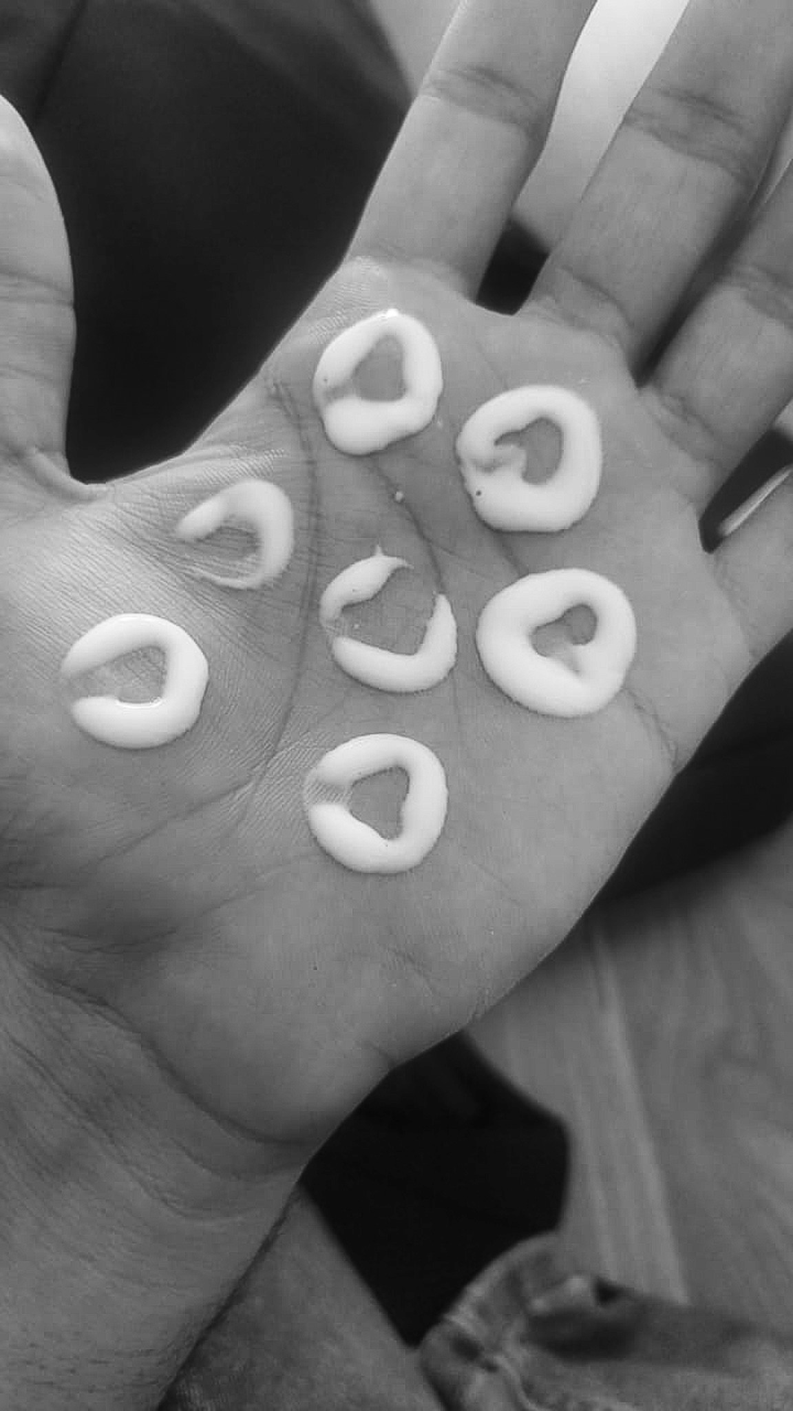 user testing, failed None of them worked. The sunscreen was too watery to hold the heart shape.