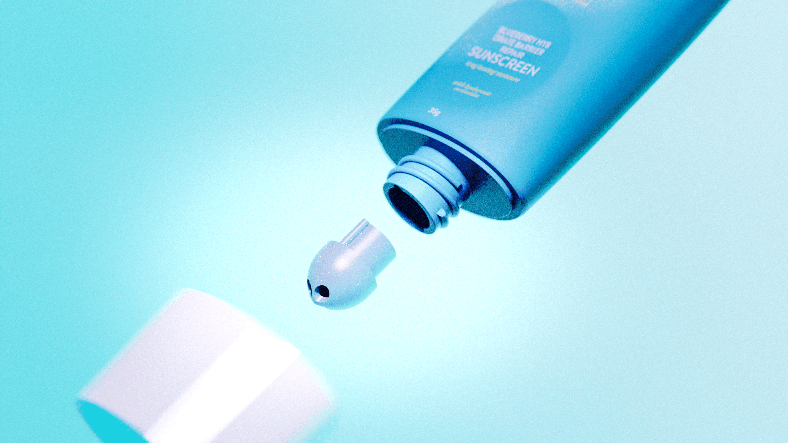 Introducing a fun, playful sunscreen tottle. The hole in the form opens up a variety of ways to interact with it - Clip it to a bag, Fidget with it, Show it off.